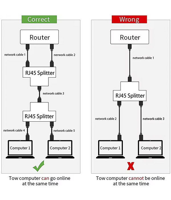 Función: usar cinco cables etherner permite a dos dispositivos acceder a la red al mismo tiempo