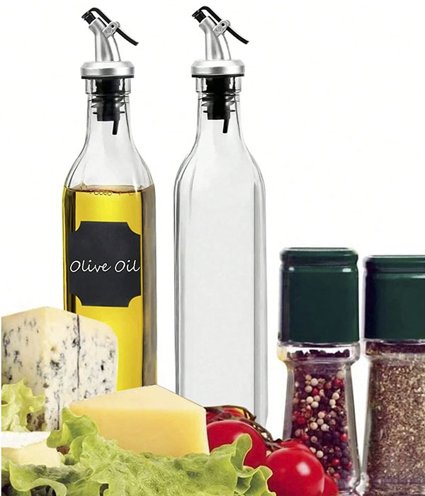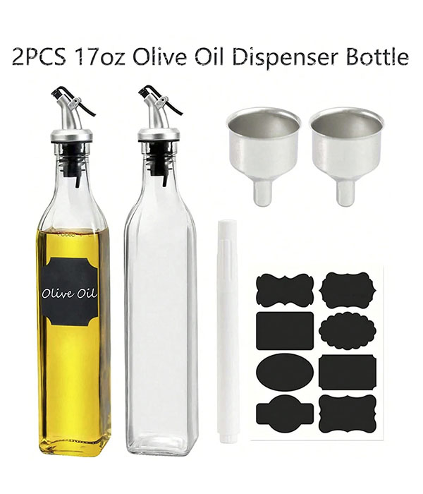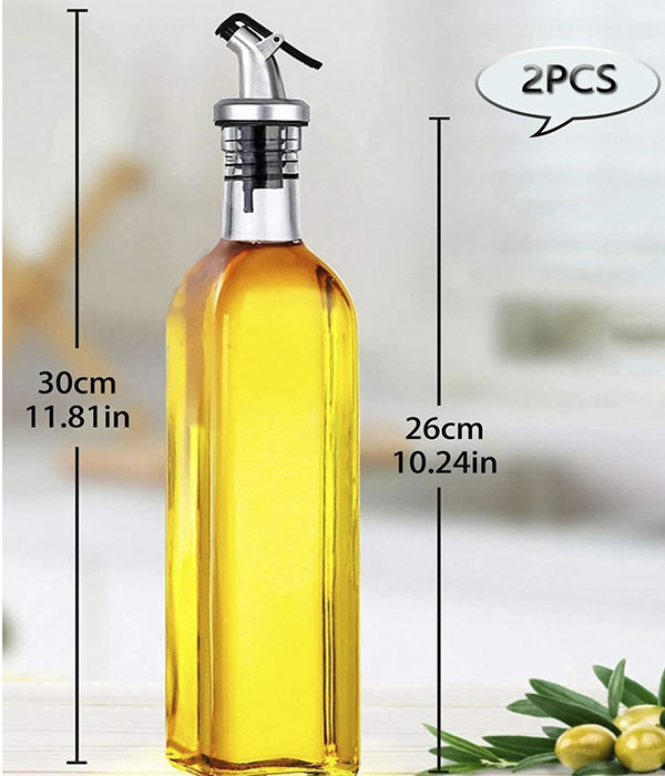 Pack de 2 botellas de aceite de vidrio cuadrado de 500ml, adecuado para salsas, vinagre y condimentos.