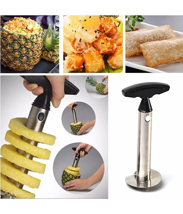 • Hoja de acero inoxidable :El pelador de piña viene con una cuchilla duradera de acero inoxidable que puede cortar fácilmente las piñas y otras frutas.