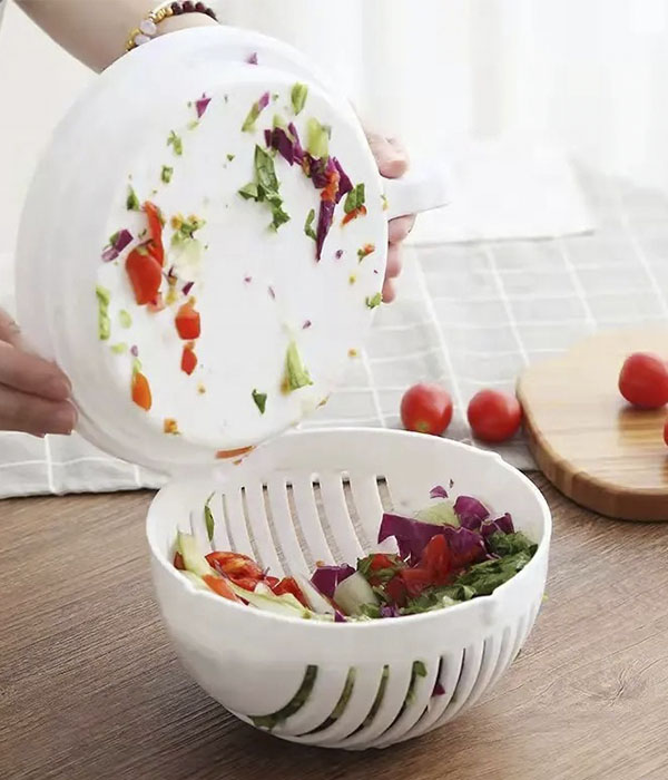 Cortador de ensaladas con tapa, juego de corte rápido multifuncional para frutas y ensaladas, rebanador de ensalada fresca para Cocina.