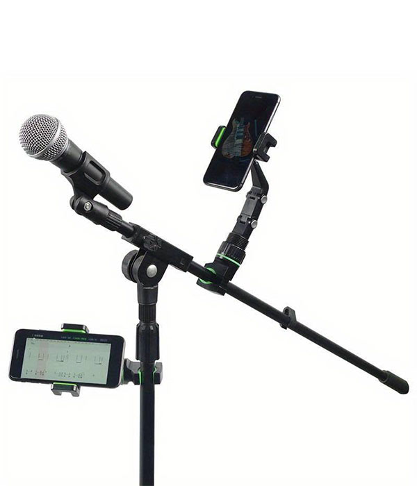 Soporte de guitarra para teléfono rotatable 360°, material ABS, instalación fácil, compatible con la mayoría de los smartphones, diseño duradero y compacto para grabación de música y transmisión en vivo.