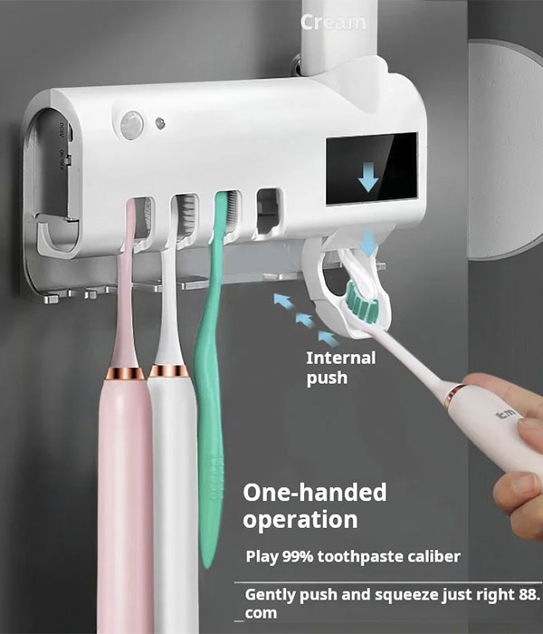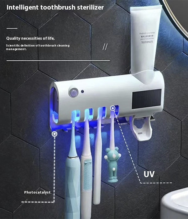 Esterilizador de cepillo de dientes ultravioleta inteligente, soporte para cepillo de dientes, exprime automáticamente la pasta de dientes.